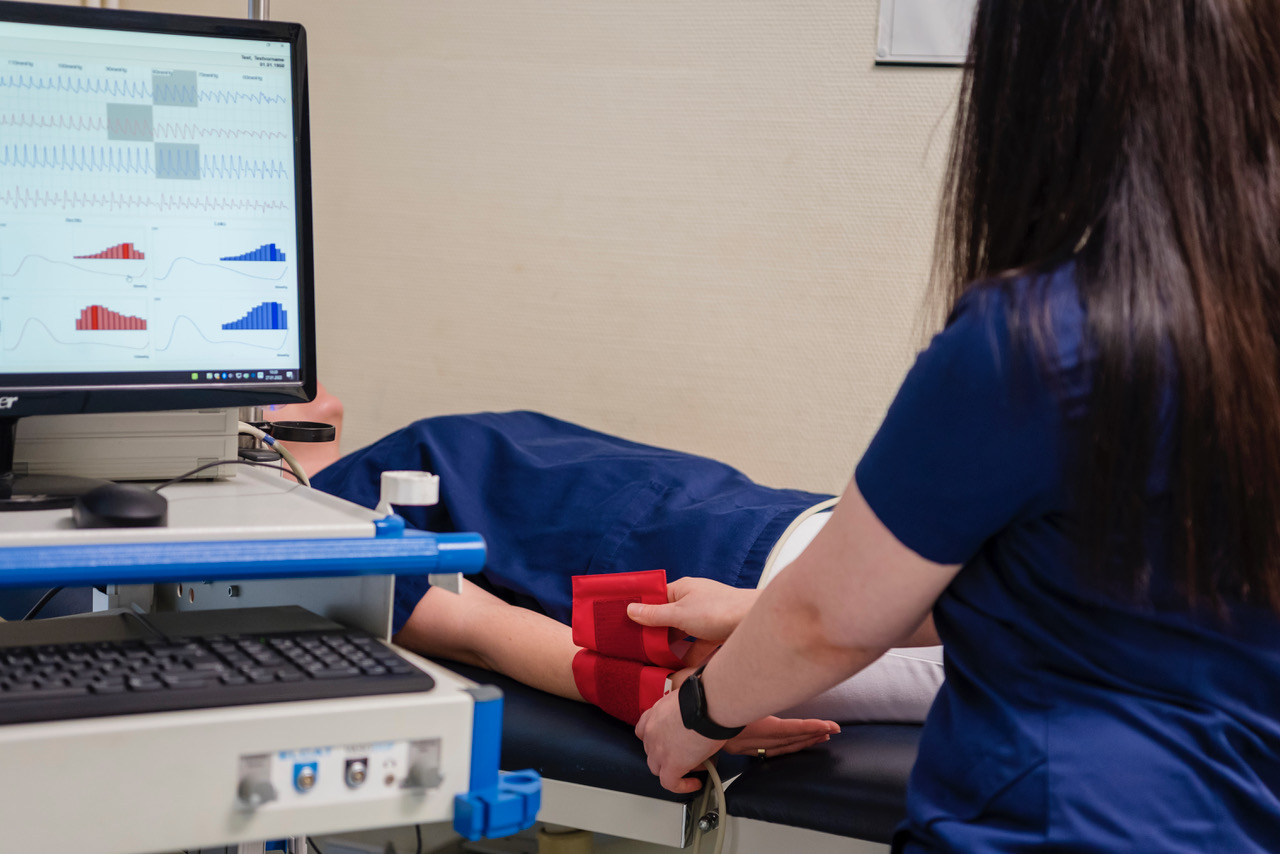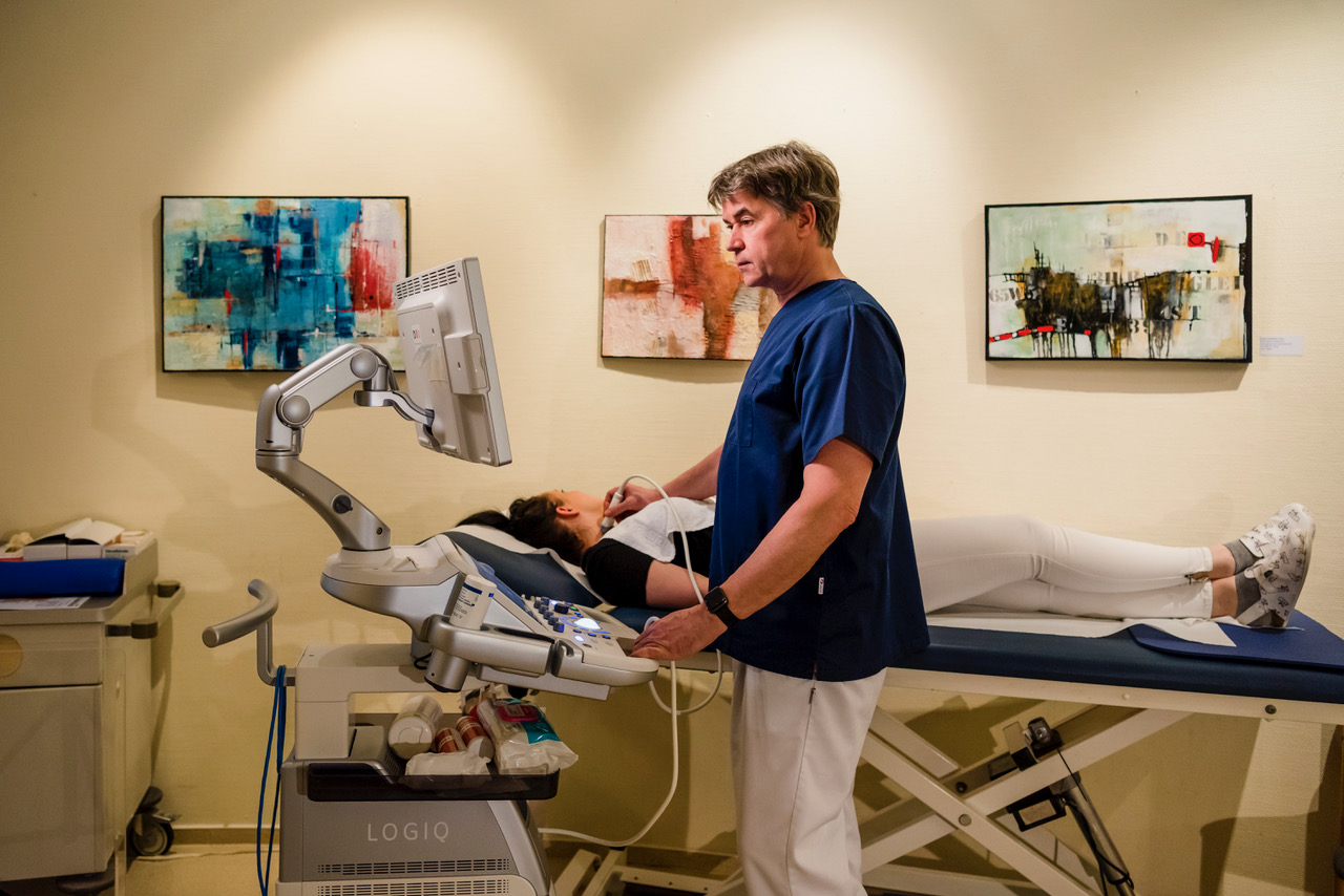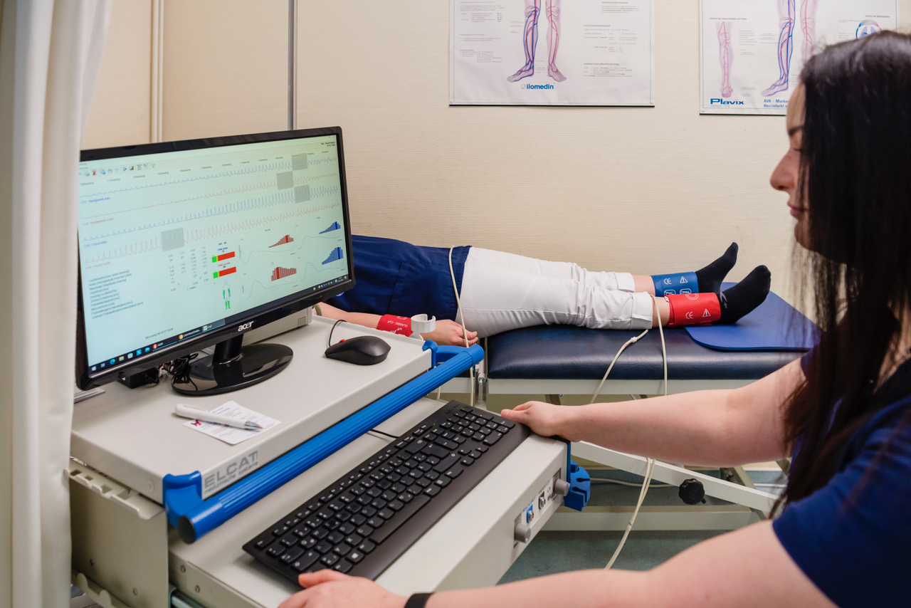 Nach einem ausführlichen Arztgespräch ist die weitere Gefäßdiagnostik für Sie in der Regel völlig schmerzlos. Neben den Methoden der körperlichen Untersuchung (u.a. Tasten und Abhören) sind auch die modernen Ultraschallverfahren ungefährlich. Der Ultraschall reicht in den meisten Fällen zur Untersuchung der Gefäße weitgehend aus.